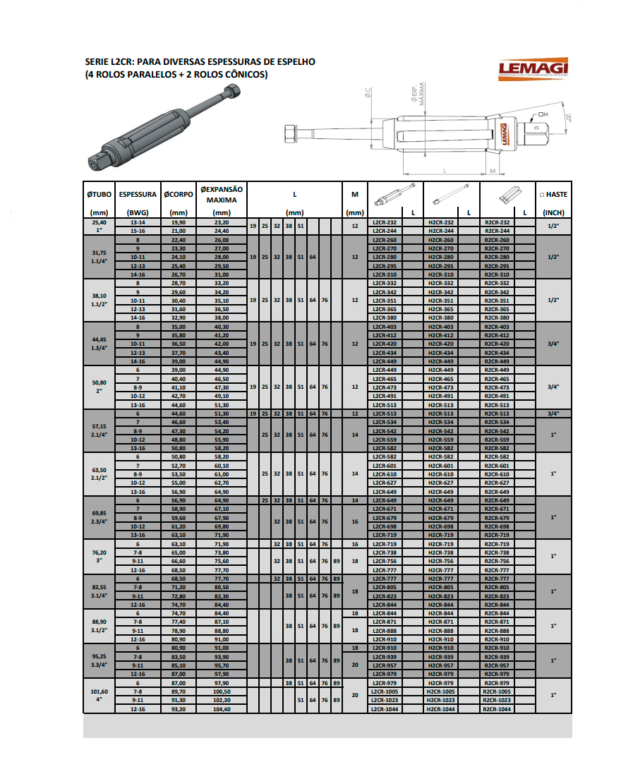 EXPANDIDORES LPU SÉRIE L2CR (4 ROLOS PARALELOS + 2 ROLOS CÔNICOS)