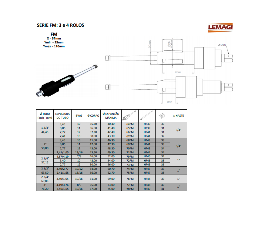 Conheça as especificações técnicas dos expandidores SÉRIE FM – 3 e 4 ROLOS da Lemagi, desenvolvidos para assegurar máxima performance em geradores de vapor, permutadores de calor e sistemas especializados.