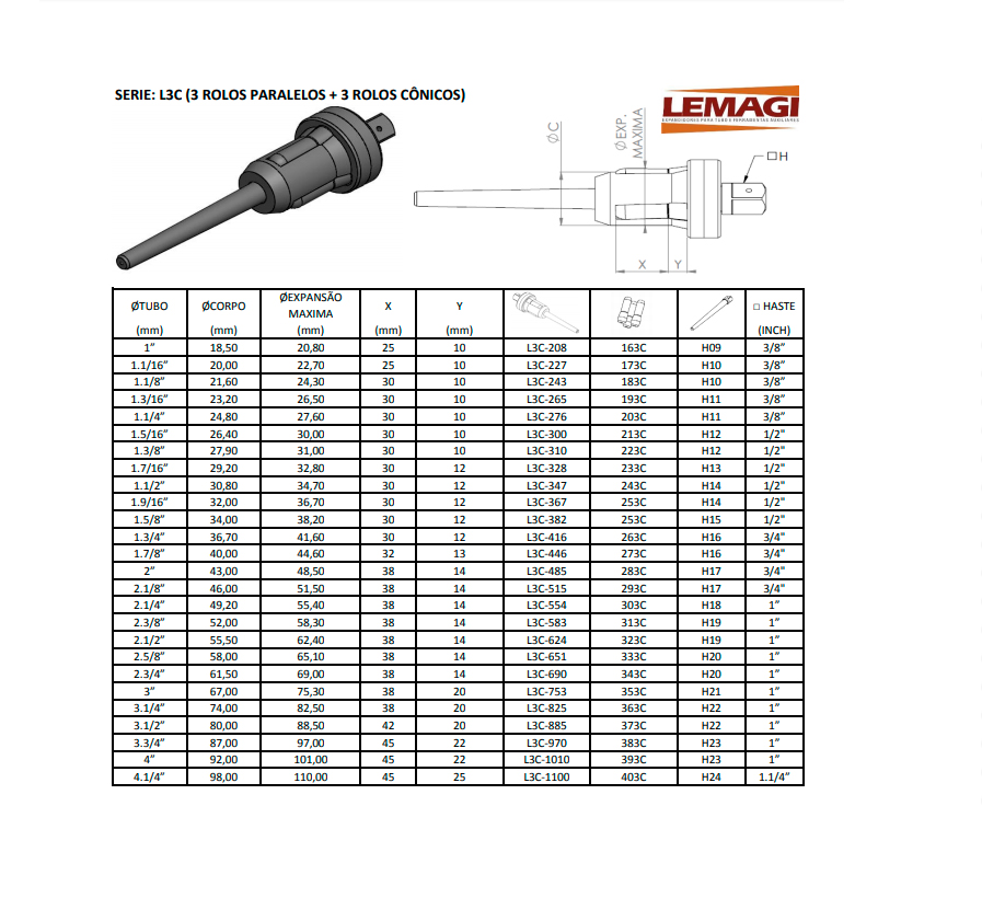 SÉRIE – L3C (3 ROLOS PARALELOS + 3 ROLOS CÔNICOS)